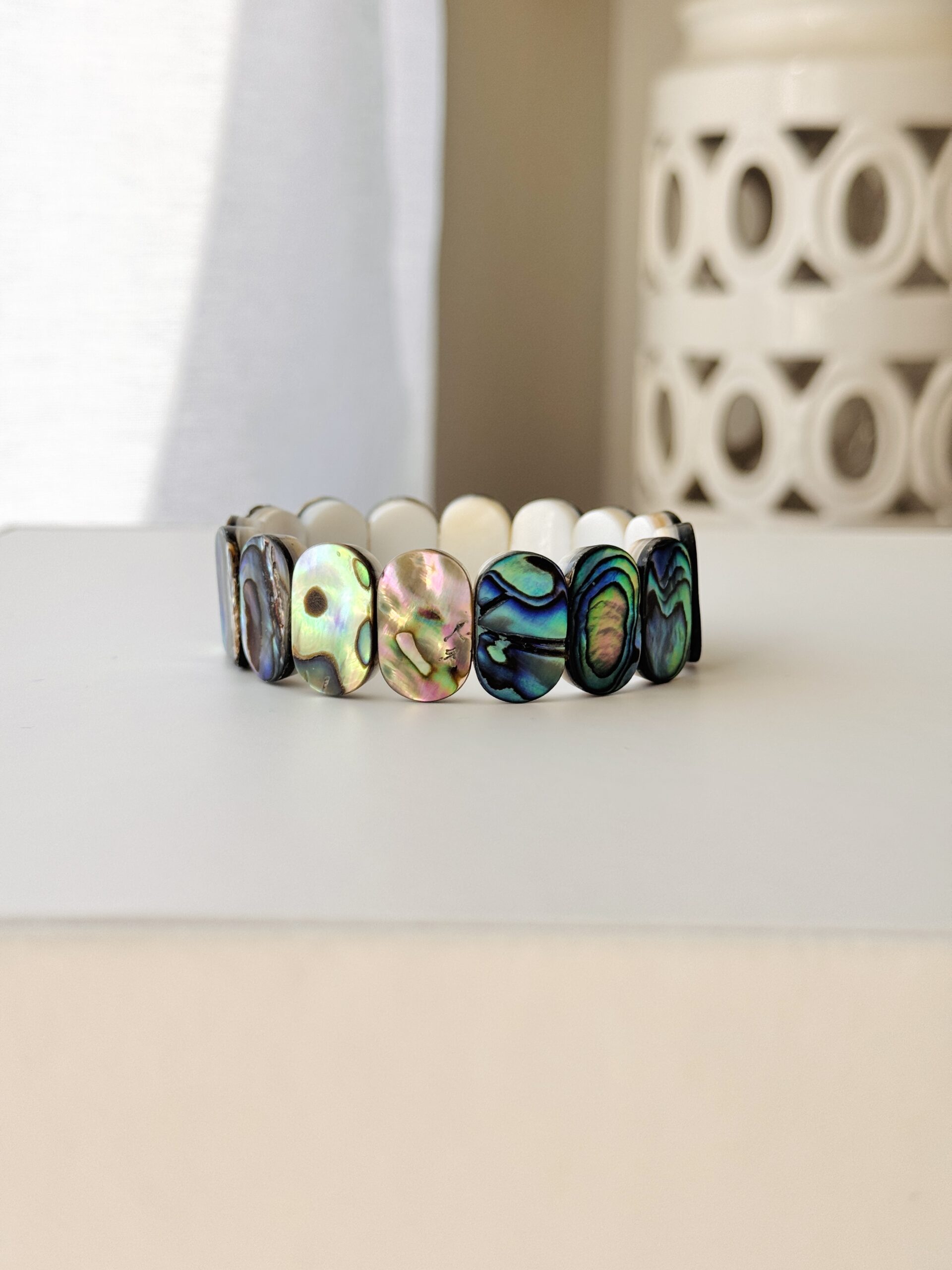 - Abalone Stretch Bracelet : ~ 6.5 inches inner diameter, featuring beautiful natural abalone shell/paua shell.
