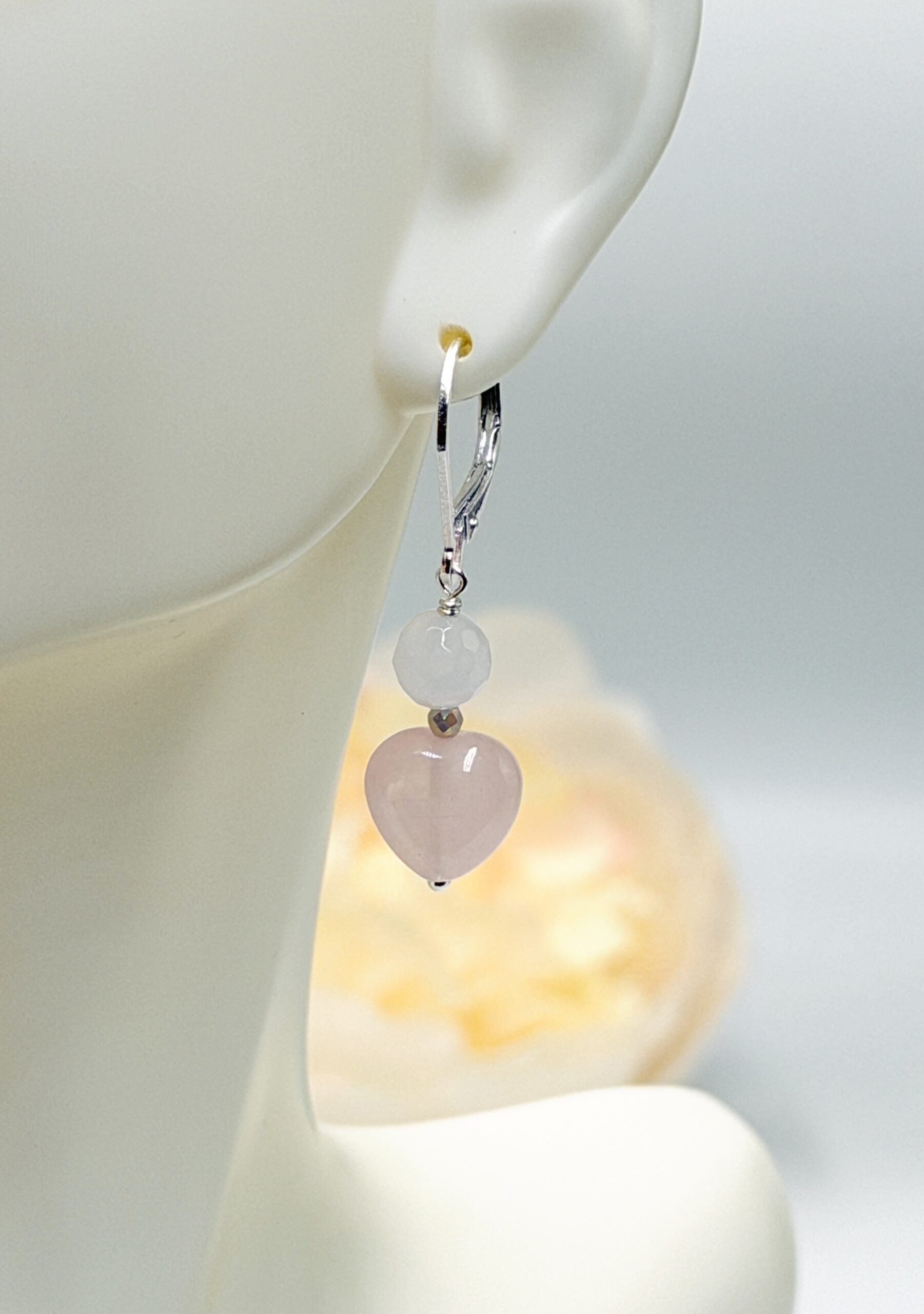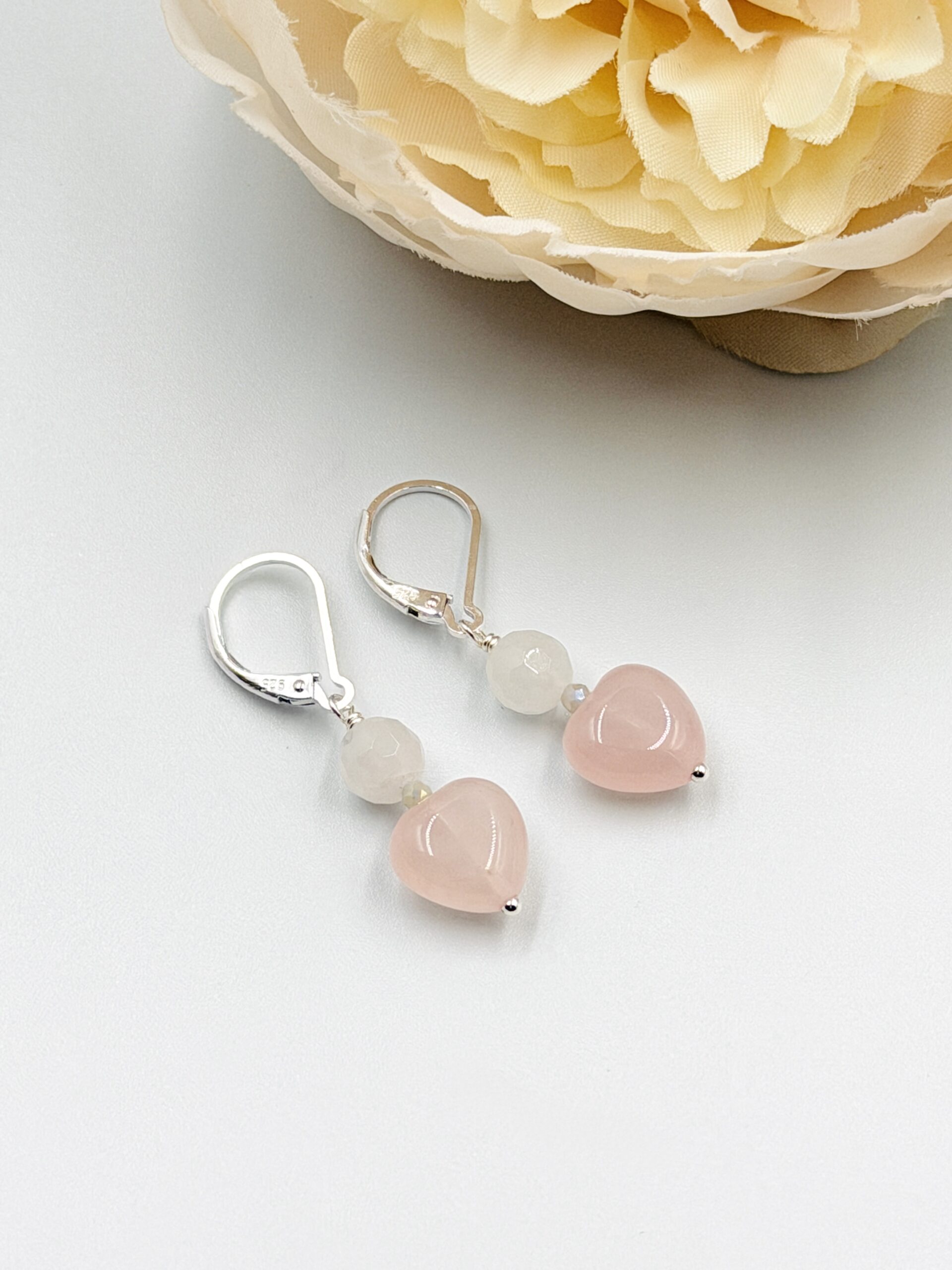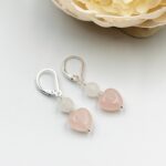 • Earrings : ~ 1 inches featuring beautiful rose quartz stones on sterling silver lever back earrings.